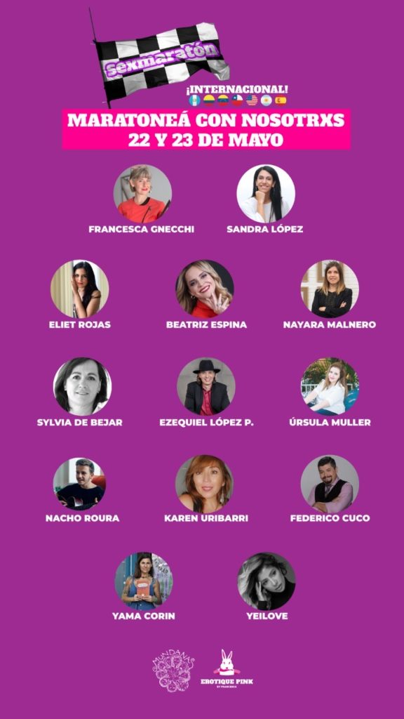 SEXMARATÓN INTERNACIONAL Un encuentro virtual dónde más de 10 especialistas de diversos países disertaremos sobre distintas temáticas de sexualidad a través de vivos de Instagram. ¿Te sumas a esta #Sexmaratón internacional? ¡Agendate mi charla! Te comparto la grilla de actividades de la carrera: Viernes 22 de Mayo: 19 horas. Francesca Gnecchi “Feminismo Sexual” a través […]